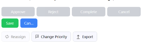 - Reject, Complete, and Cancel Buttons: Update the ticket status to Rejected, Completed, or Cancelled, respectively. The Reject option allows selective rejection of individual steps rather than the entire ticket.